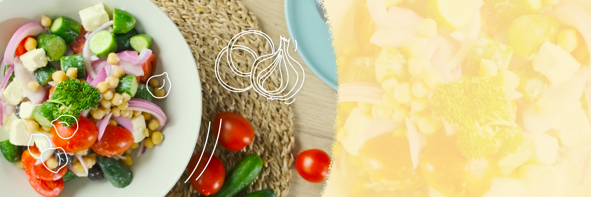 1. Mix in a bowl the chickpeas d’aucy with cherry tomatoes cutted in two.