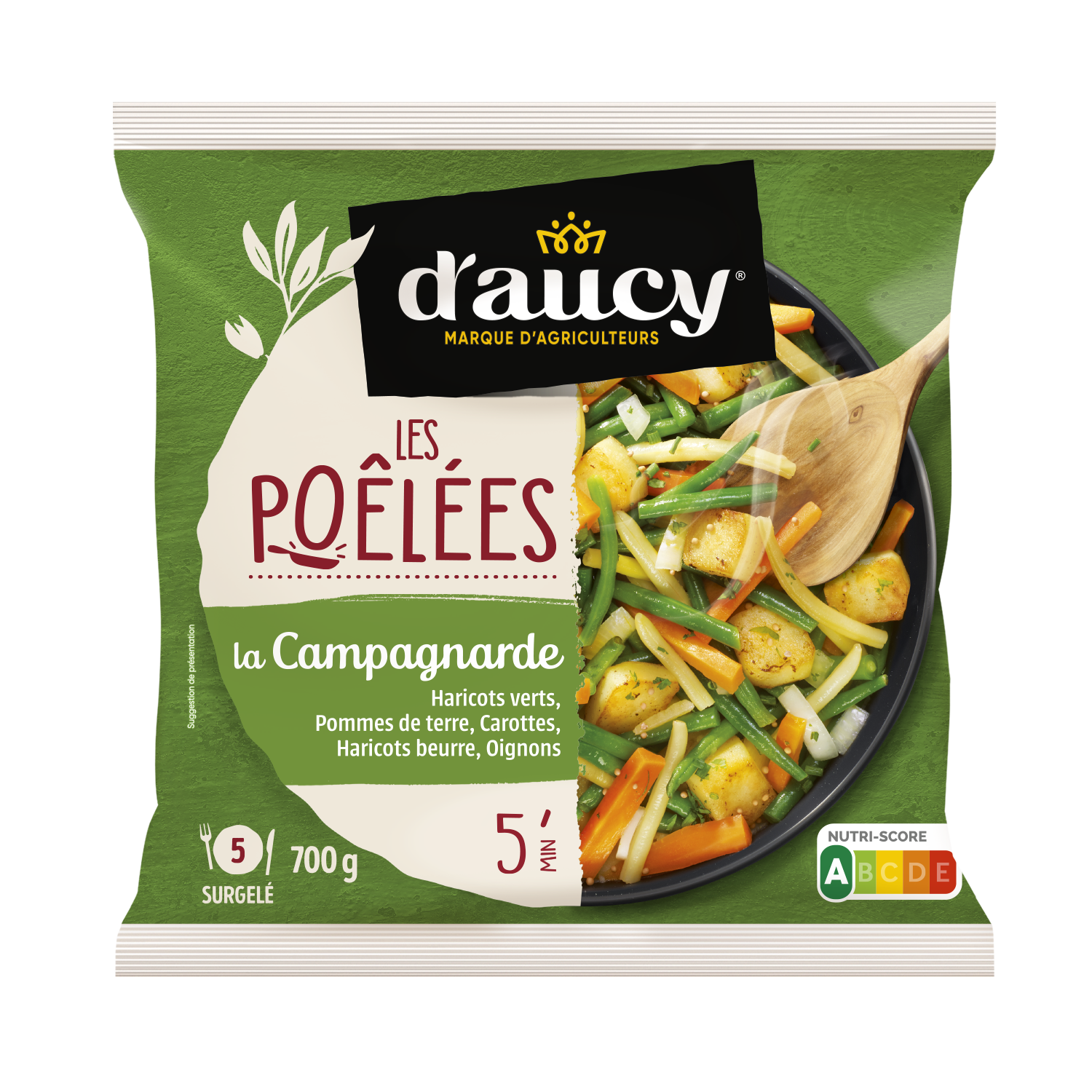 Green beans 22%, seasoned pre-fried potatoes 19% (Potatoes, sunflower oil, seasoning: salt, garlic, spices: paprika, turmeric, pepper, herbs: parsley, chives, dextrose (wheat or maize)), carrots 16%, yellow beans 14%, water, onions 11%, whole-grain mustard 1%, rapeseed oil, natural flavouring, garlic, concentrated butter, salt, mustard seeds 0.3%, carrot juice, parsley, rosemary, pepper. Prepared in a factory that handles celery and its by-products