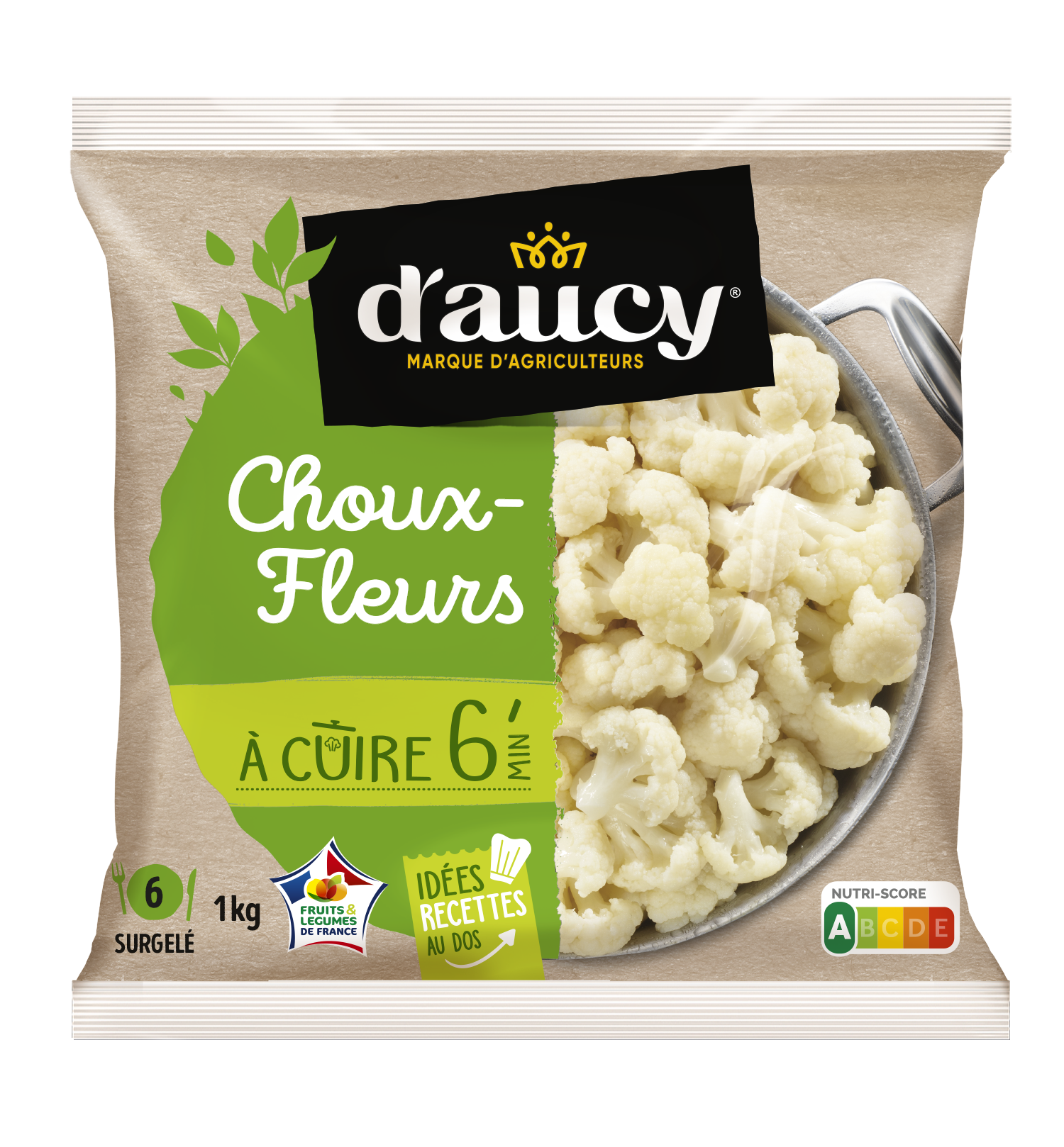 A nossa couve-flor é cultivada em campo aberto em França e colhida na época ao atingir a maturidade certa. É congelada para preservar todas as suas qualidades.