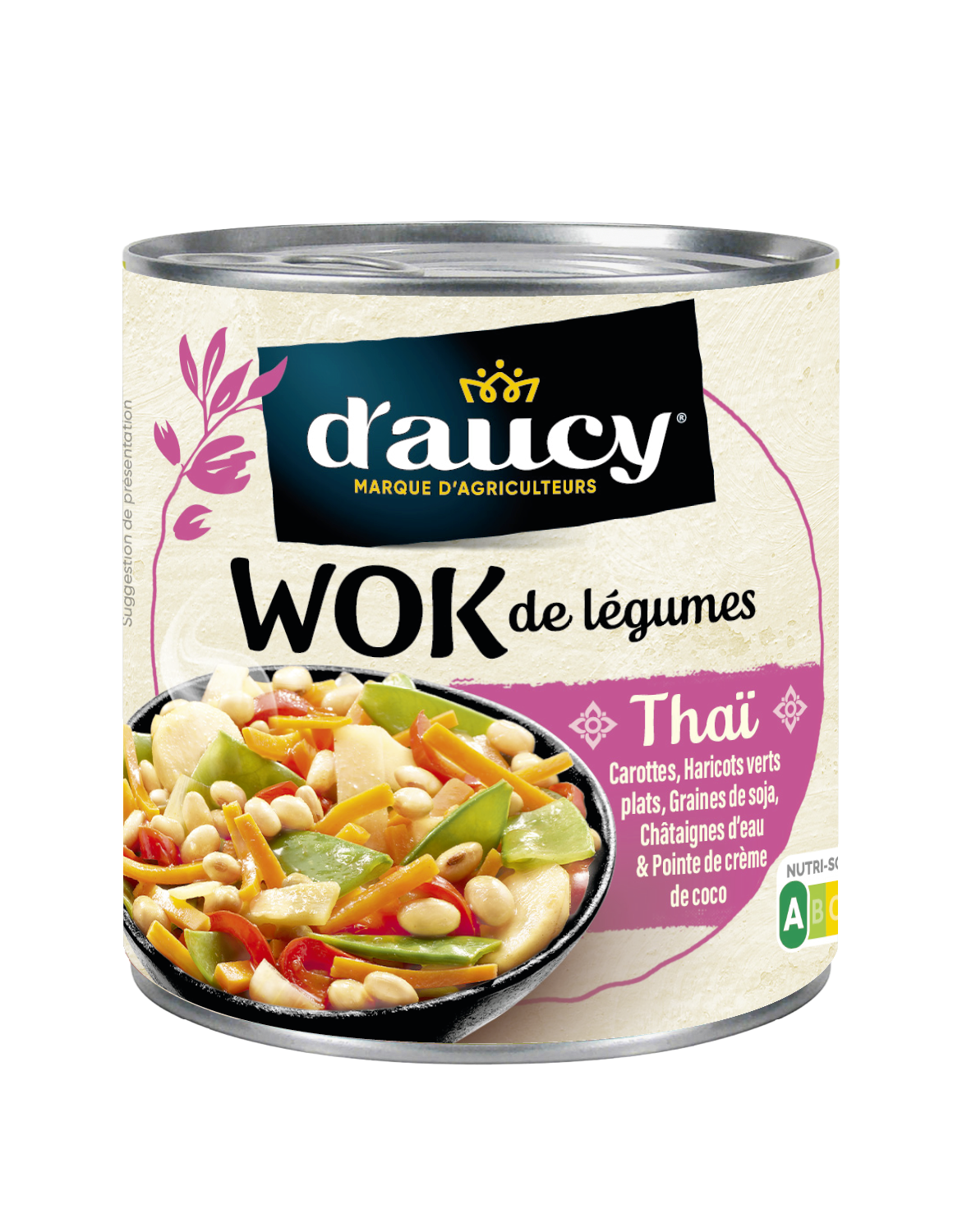 Cenouras (26%), feijão-verde plano (17%), sementes de soja (8,6%), pimentos vermelhos, cebolas, rebentos de bambu, castanhas de água (5,7%), água, óleo de girassol, creme de coco em pó (0,6%) [creme de coco, maltodextrina, caseinato de sódio (leite)], sal, erva-príncipe, cominhos, polpa de tomate ultraconcentrada, alho, açúcar, coentros, gengibre, malagueta, curcuma.