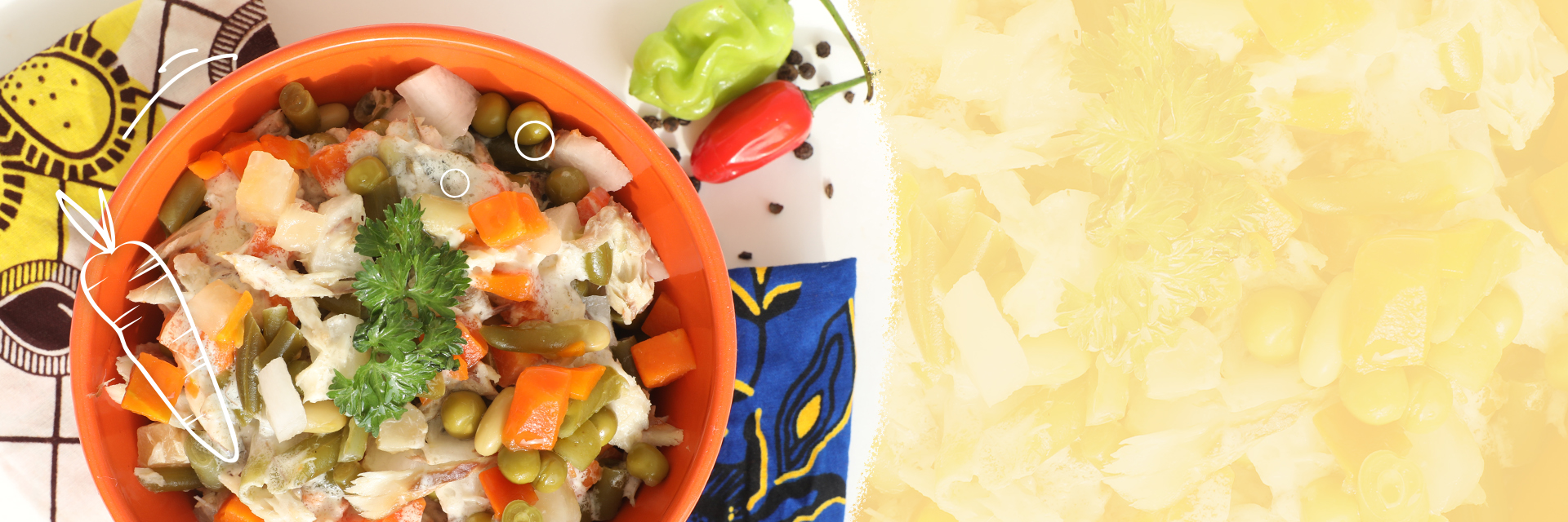 Macedónia de legumes com peixe fumado desfiado