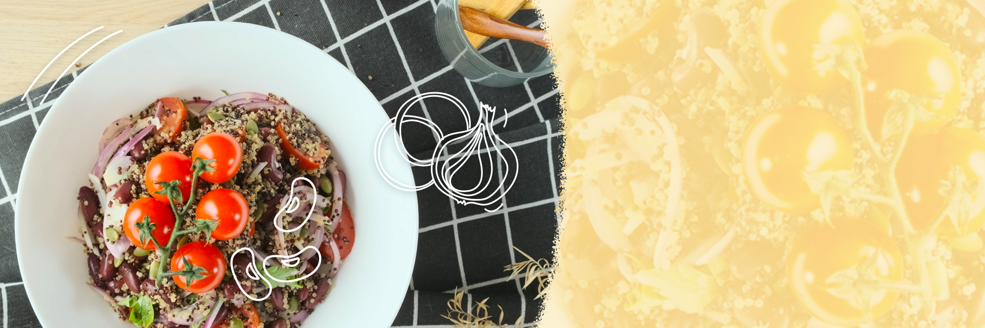 2. Coloque a quinoa, a cebola, os tomates e os feijões-vermelhos numa saladeira. Acrescente a salsa picada e misture.