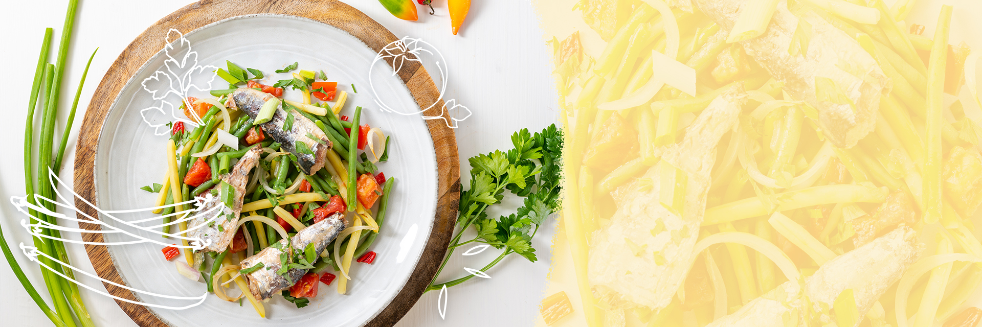 Página inicial do sítio > Ideias de Receitas > Duo de feijão-verde e feijão-manteiga com tomate e sardinhas