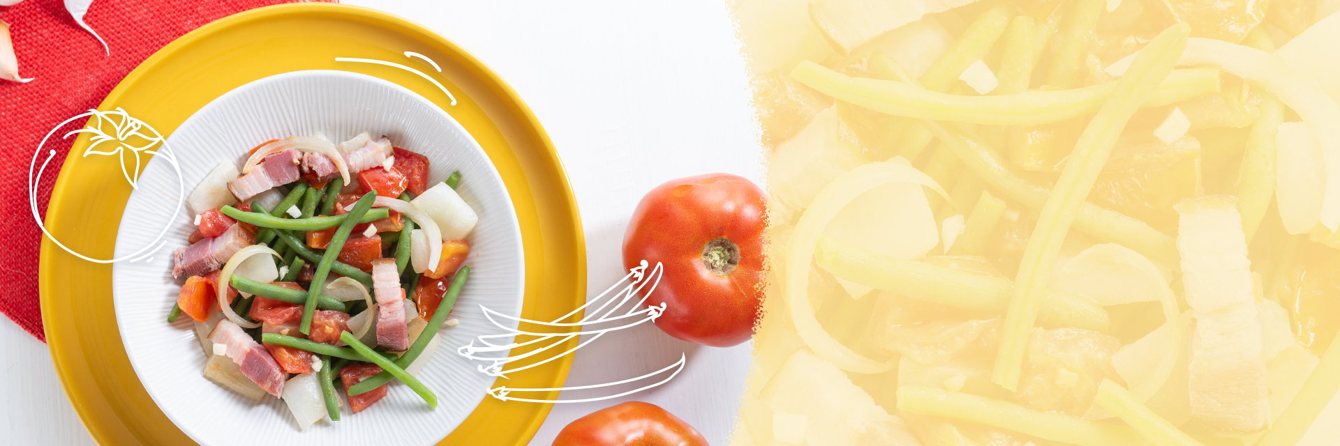 Página inicial do sítio > Ideias de Receitas > Estufado de pepino e feijão-verde com bacon