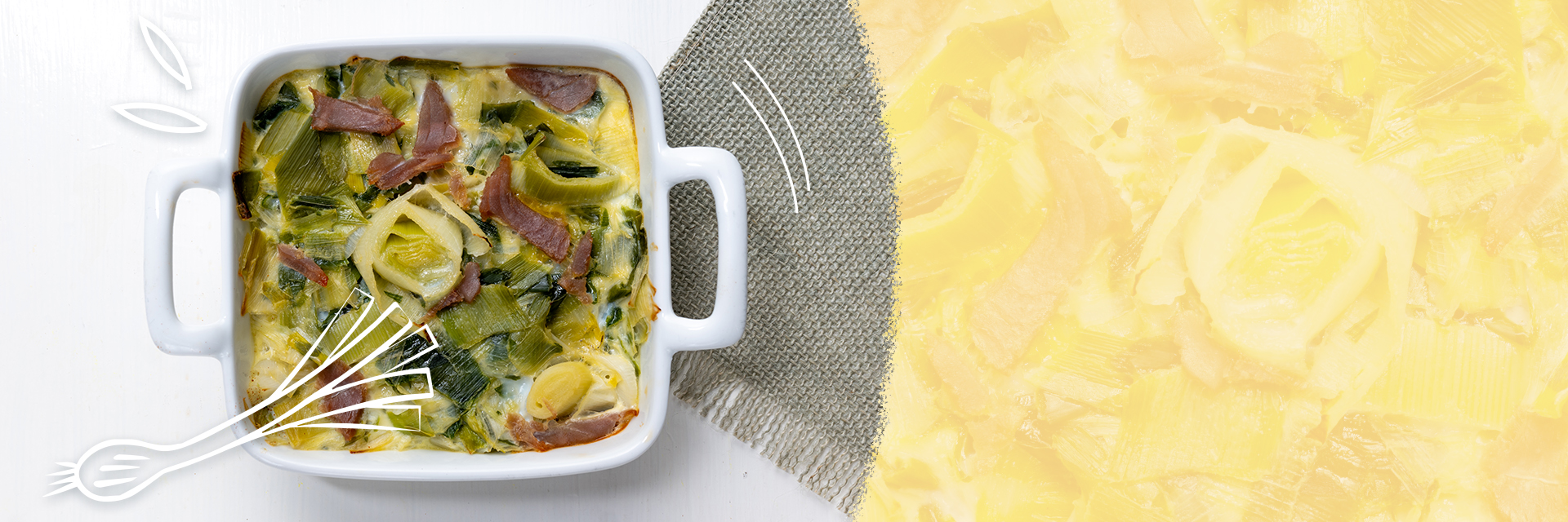 Página inicial do sítio > Ideias de Receitas > Flã de alho-francês e peixe fumado